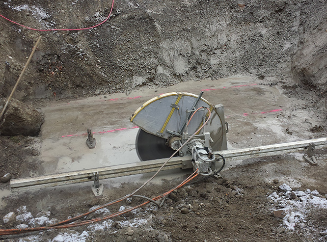Abtrennen einer Stützmauer einer Tiefgarage ...
