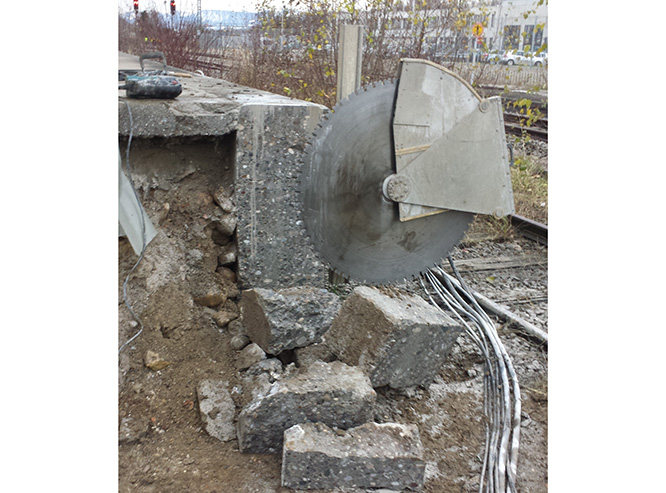 Abtrennen einer Rampenstüztmauer am Bahnhof Feldkirchen/Westerham ...