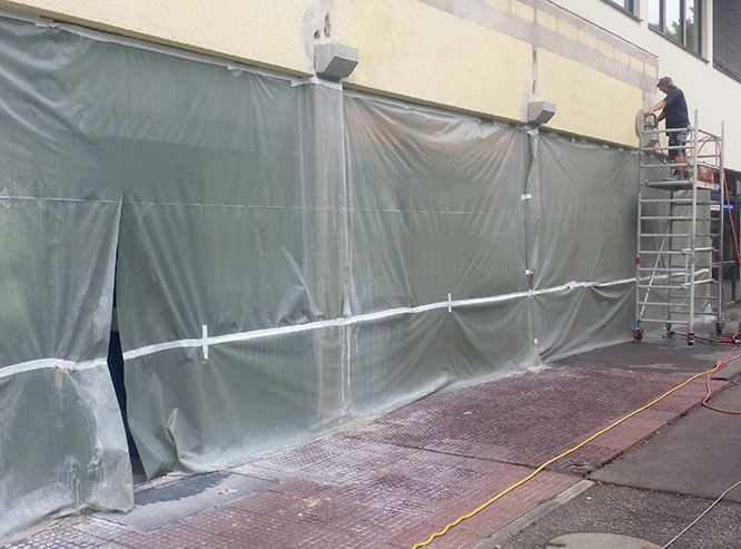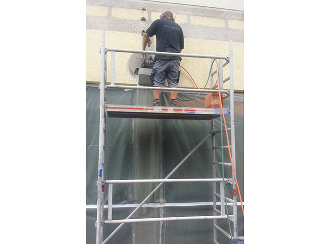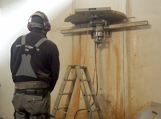 Herstellen von Öffnungen und Schlitzen in beliebiger Form, auch Schrägschnitte bis 45º für Türleibungen in Wänden, Beton, Stahlbeton und Mauerwerk. Überstehende Betonteile können auch wandbündig geschnitten werden.