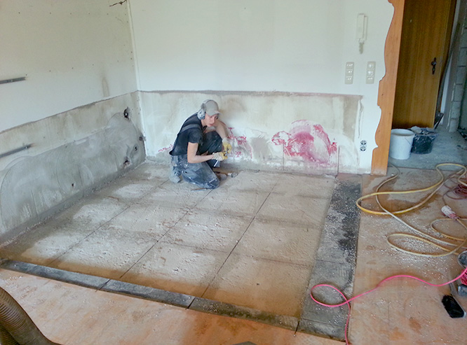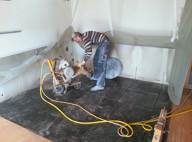 ... durchtrennen der Stahlbetondecke in mehreren Segmenten ....