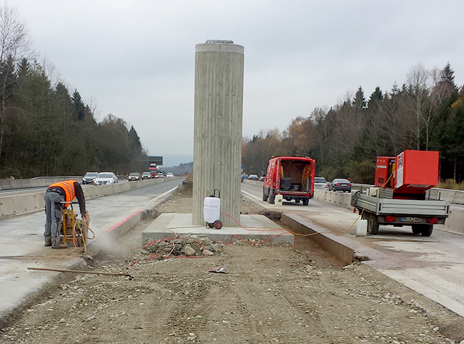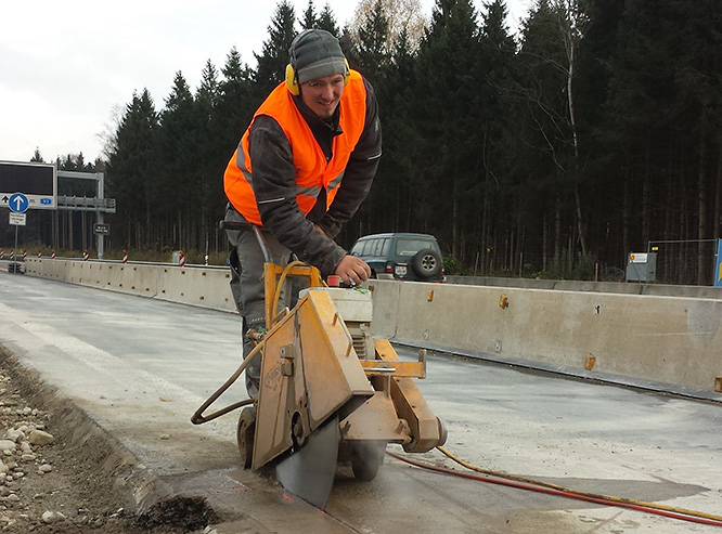 Fugenschneidearbeiten auf der A8 (Brückenpfeiler neue Westtangente B15)