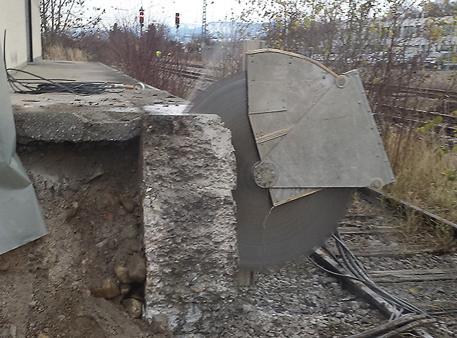 Abtrennen einer Rampenstüztmauer am Bahnhof Feldkirchen/Westerham ...
