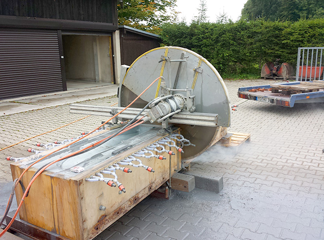 ... um im Anschluss die geschnittenen Betonelemente auszubringen ...